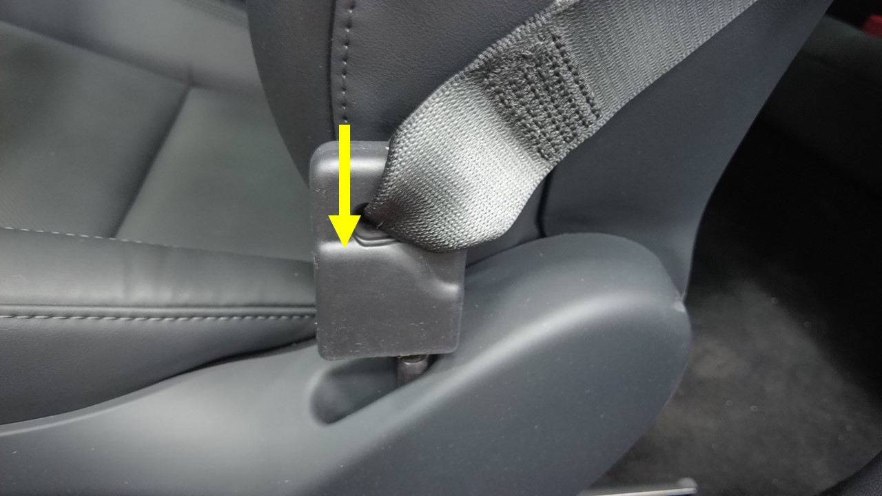 - 将座椅安全带释放钥匙 (1133787-00-A) 插入座椅安全带预紧器连接件底部,将座椅安全带从预紧器上松开。