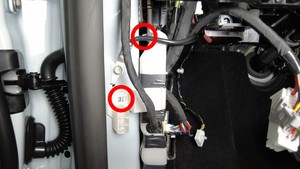 - 松开将左侧车身线束固定到左侧车身控制器和 A 柱的夹子(2 个),将线束移至一旁。