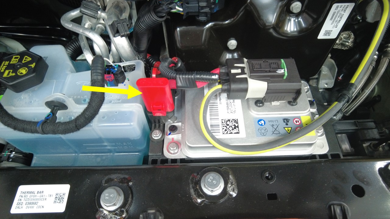 - Secure the LV maintainer negative terminal to the VCFront bracket bolt (as indicated on the VCFront label).