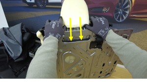 - 从第二排左侧座椅靠背框架上拆下靠背泡沫。