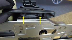 - 安装将第二排座椅靠背中央把手固定到座椅靠背框架的卡子(2 个)。