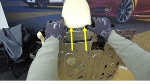 - 将第二排左侧座椅靠背泡沫安装到座椅靠背框架上。