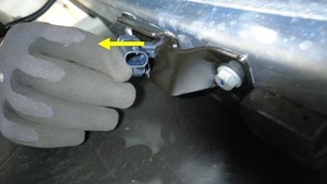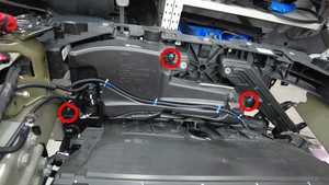 拆卸将洗涤液罐安装到前端支架的螺栓(3 个)。