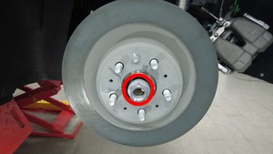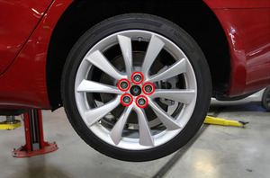 - 安装左后轮毂,然后安装并手动拧紧轮毂螺母。