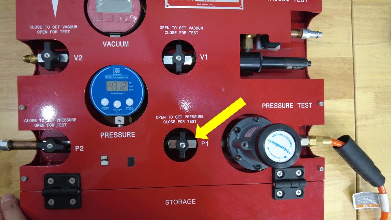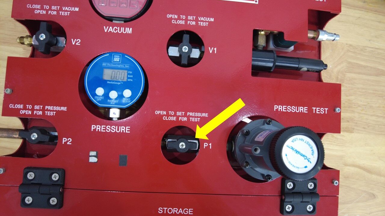 - 打开 P1 阀,释放系统压力。