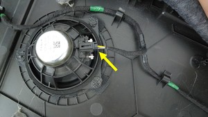 - 将电气连接器从右侧行李架扬声器上断开。