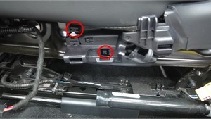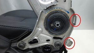 使用一字螺丝刀松开将驾驶位座椅外侧护板支架固定到座椅总成的前部卡子(2 个)。