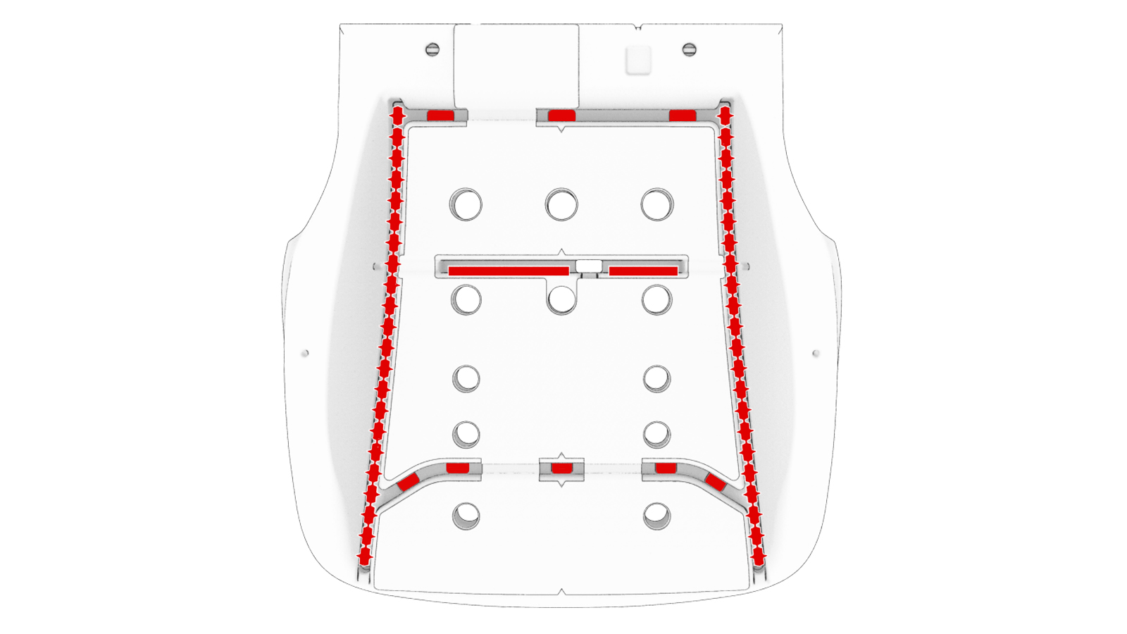 - 将新的占用传感器连接器布设在凹槽中,然后将新的传感器粘贴到新的座垫泡沫上。