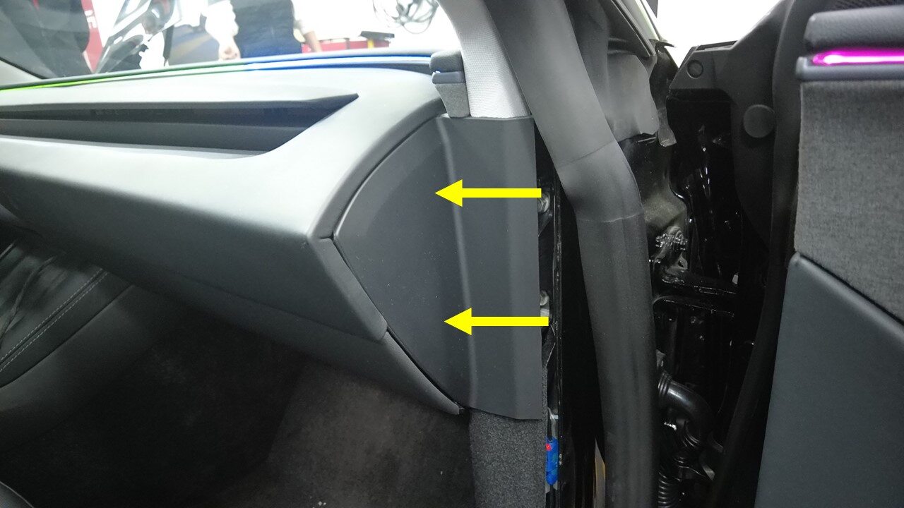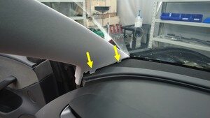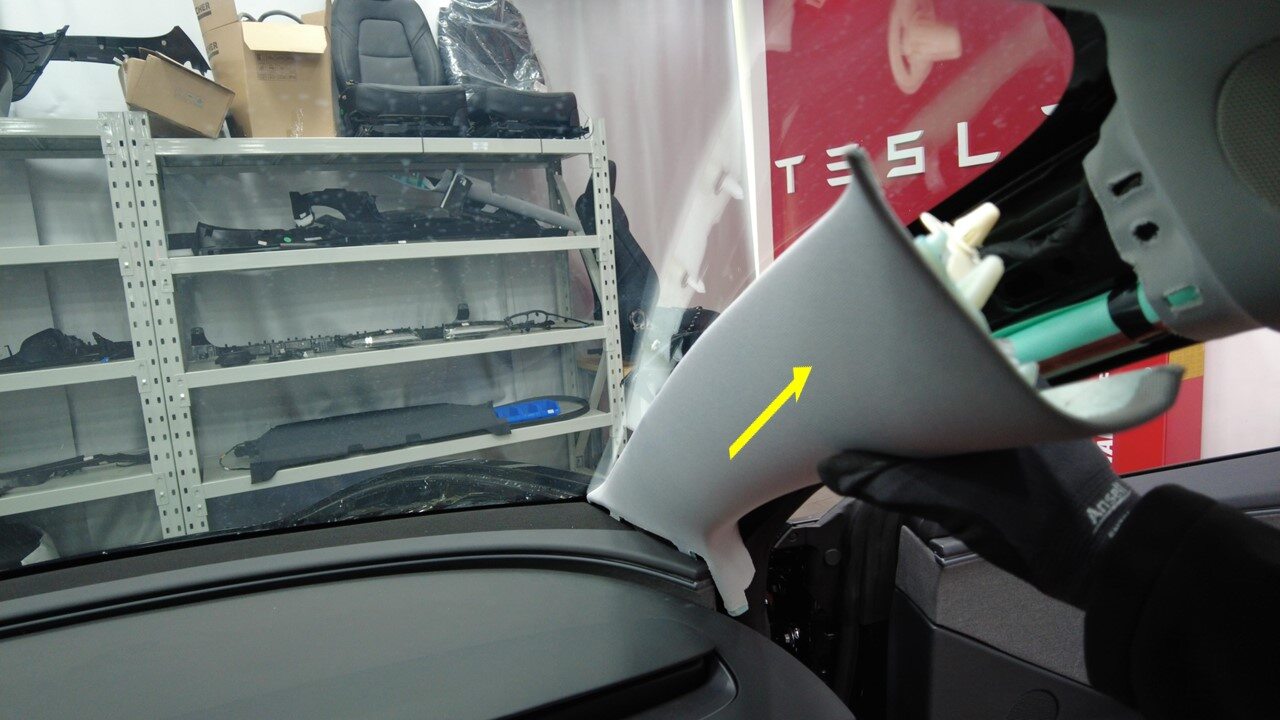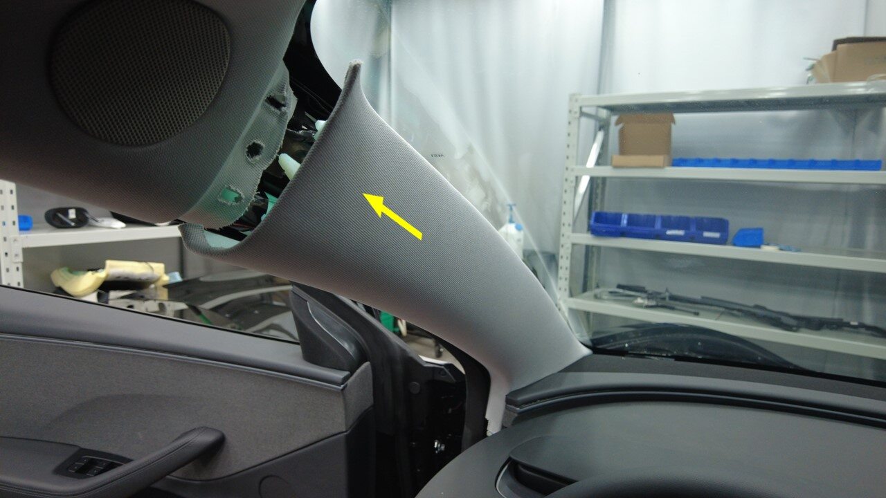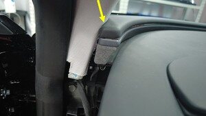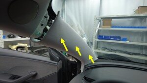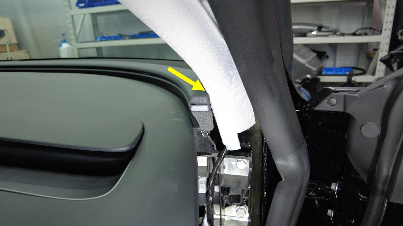 注6x clips, 1x tether, 2x guide tabs, 1x alignment pin, Pull inside of the upper portion of upper A-pillar, Depress 2x tabs to remove tether from body side, Then pull upper A-pillar upward to remove