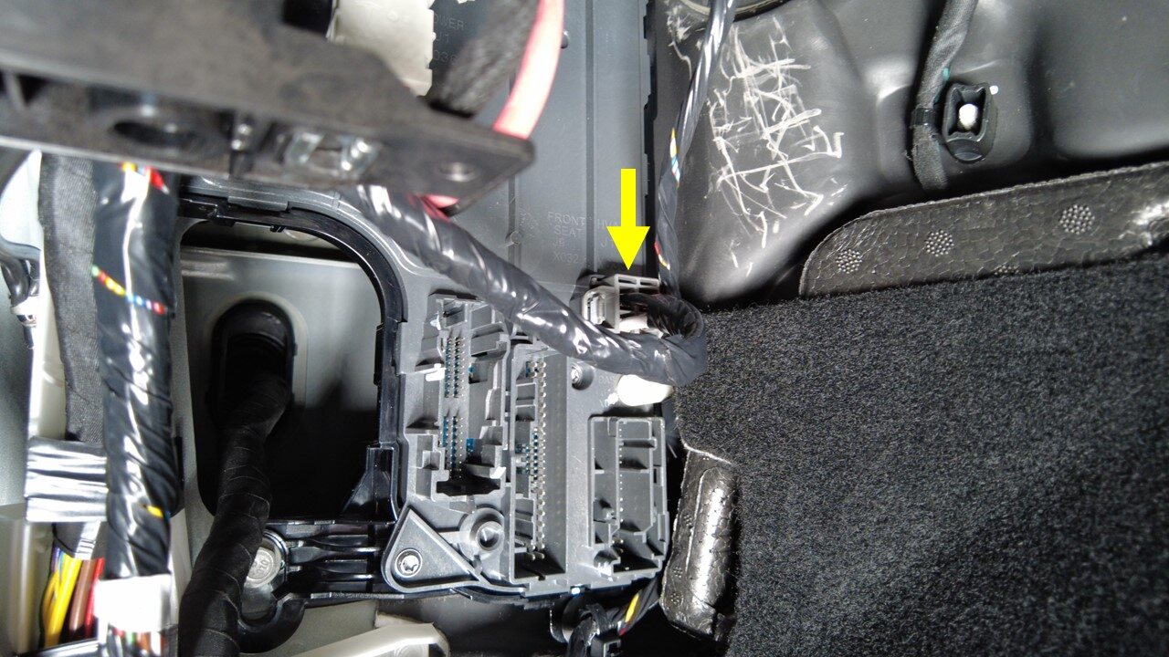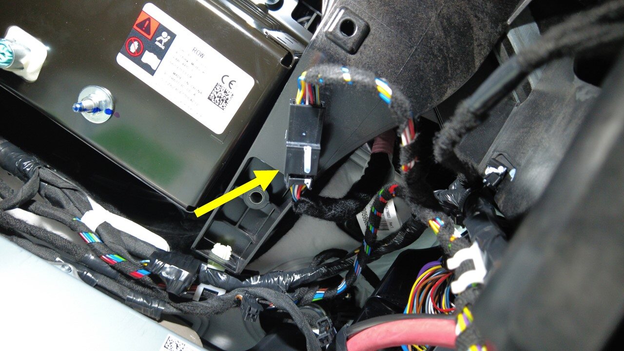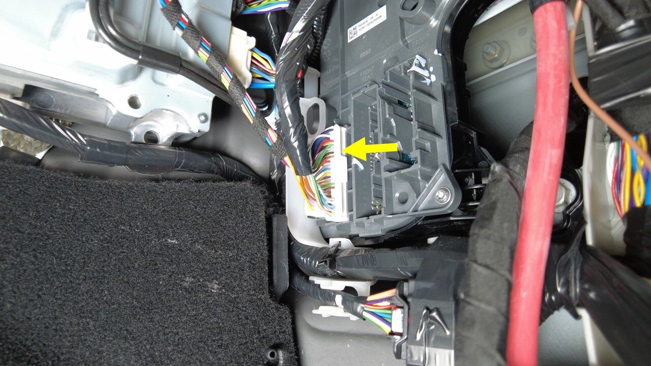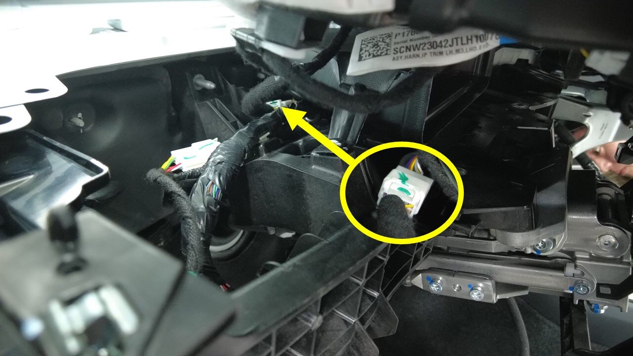 注1x connector, Peel back plastic film, Release by pulling back both white tabs simultaneously, Avoid straining harness, Only one tab visible in image matching tab is on opposite side