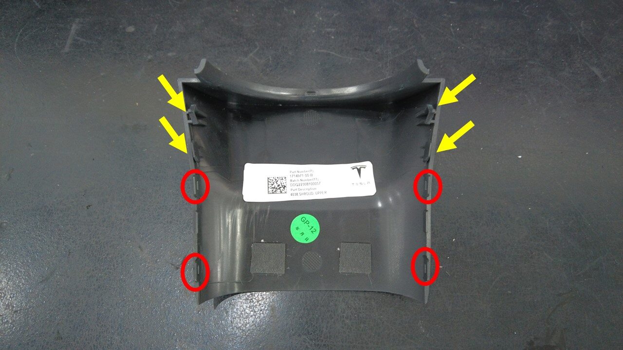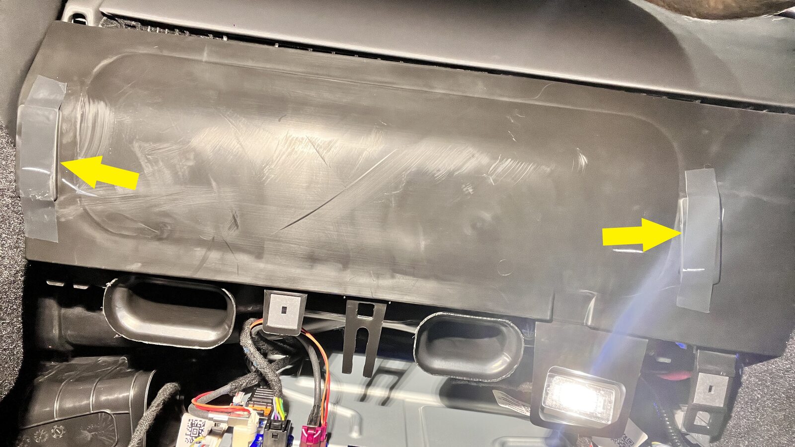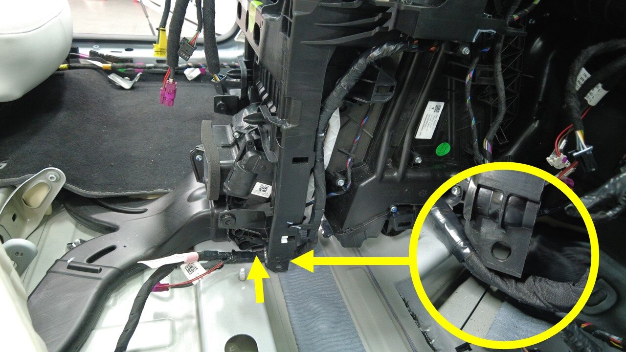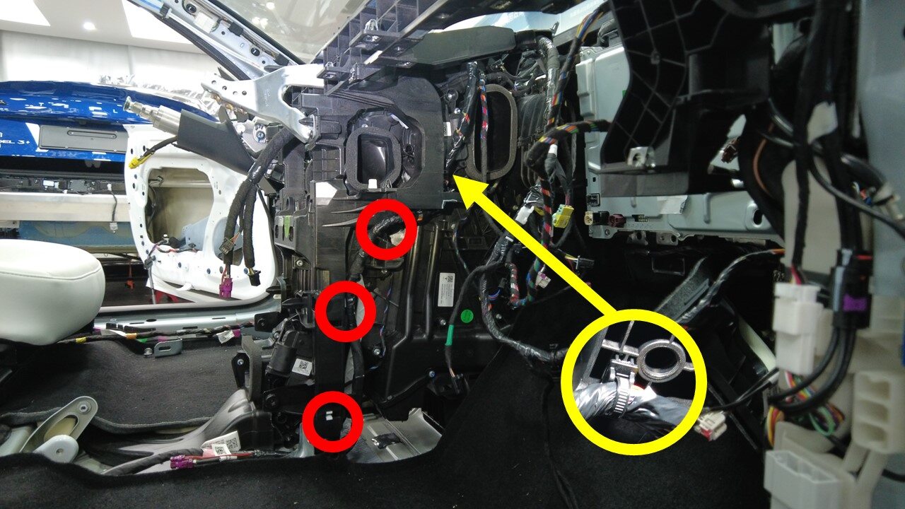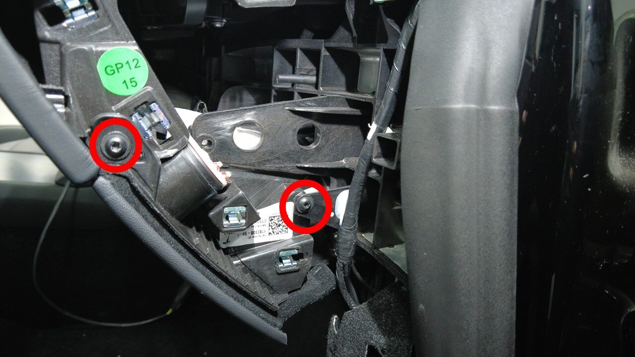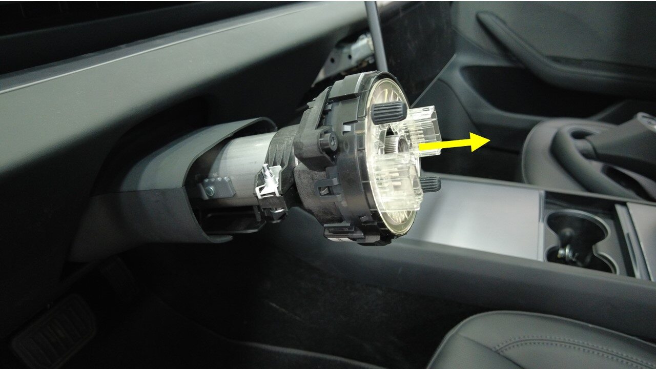 注2x spring clips, 2x datums, Press the spring simultaneously from two access holes to release, Access holes located at 4 and 8 o’clock position, Do not insert tool too far as air bag connector could be damaged
