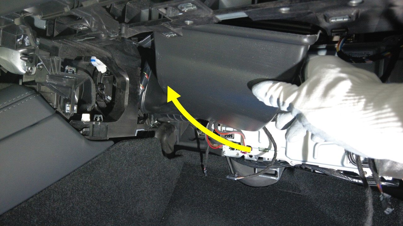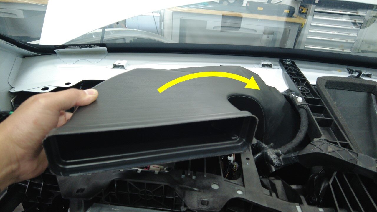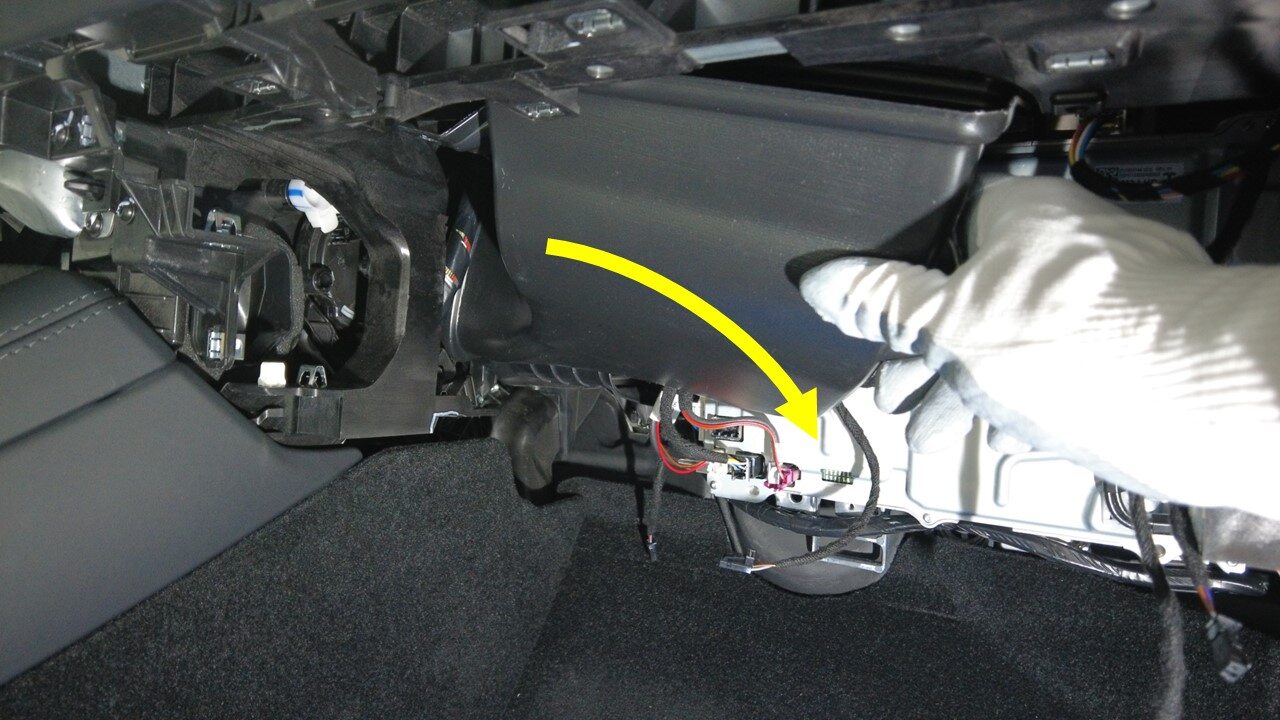 注Recommend assistance, Tilt rear of console upward, pull assembly towards rear of vehicle, then tilt front of console upward and remove through passenger side, Then Place on the work table