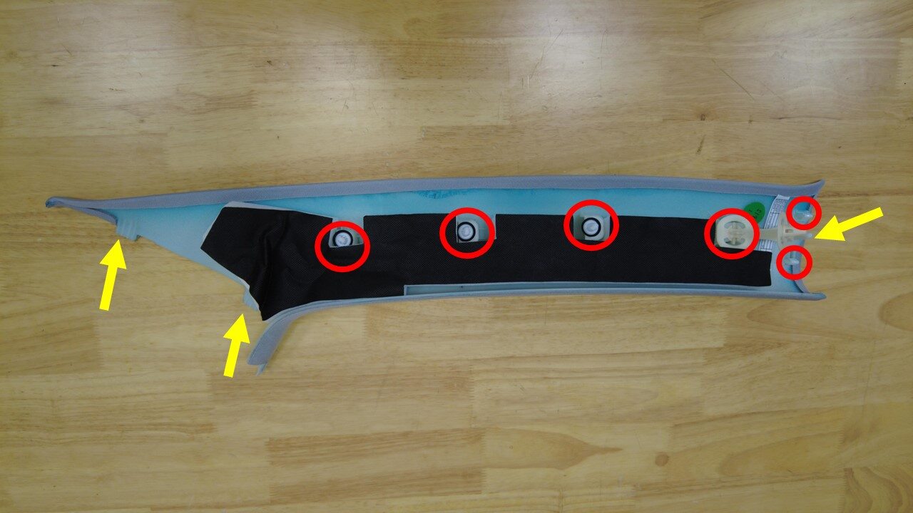 注6x clips, 1x tether, 2x guide tabs,1x alignment pin, Pull inside of the upper portion of upper A-pillar, Depress 2x tabs to remove tether from body side, Then pull upper A-pillar upward to remove