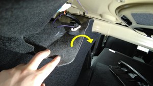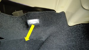 - 轻轻抬起后备箱左侧饰板上部,以便接触地面照明灯。