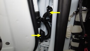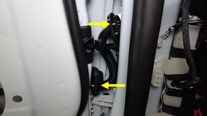 - 手动预装将铰链固定到左前车门的上部螺栓(2 个),以便安装。