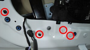 紧固将铰链固定到左前车门的螺栓(4 个)。