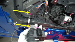 - 将车窗开关专用工具 (1454796-00-A) 连接到左前车门线束。