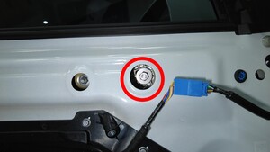 将线束穿过车门总成送入驾驶室,然后将索环安装到车身上。