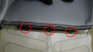 使用对角切割器切开座椅靠背中央的拱环(3 个),然后将饰板罩与拱环分离。