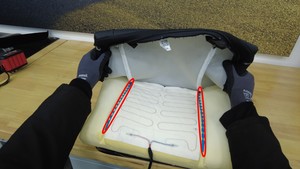 从外罩底部开始,将右侧座椅靠背蒙皮罩轻轻从泡沫上拉开。