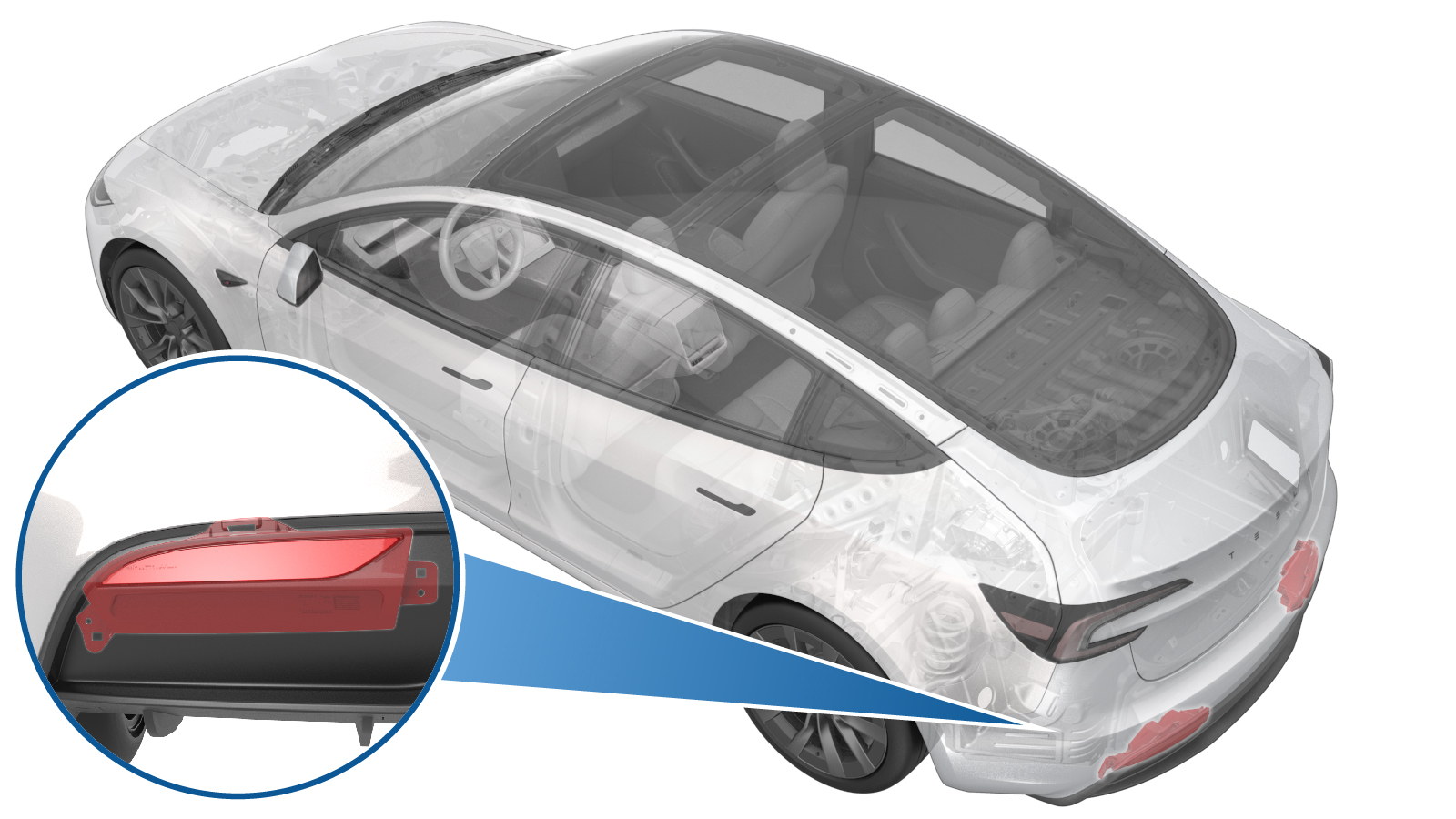 - 连接左后饰板灯连接器。
