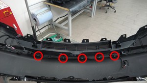 - 安装将饰板线束固定到格栅的夹子(5 个)。