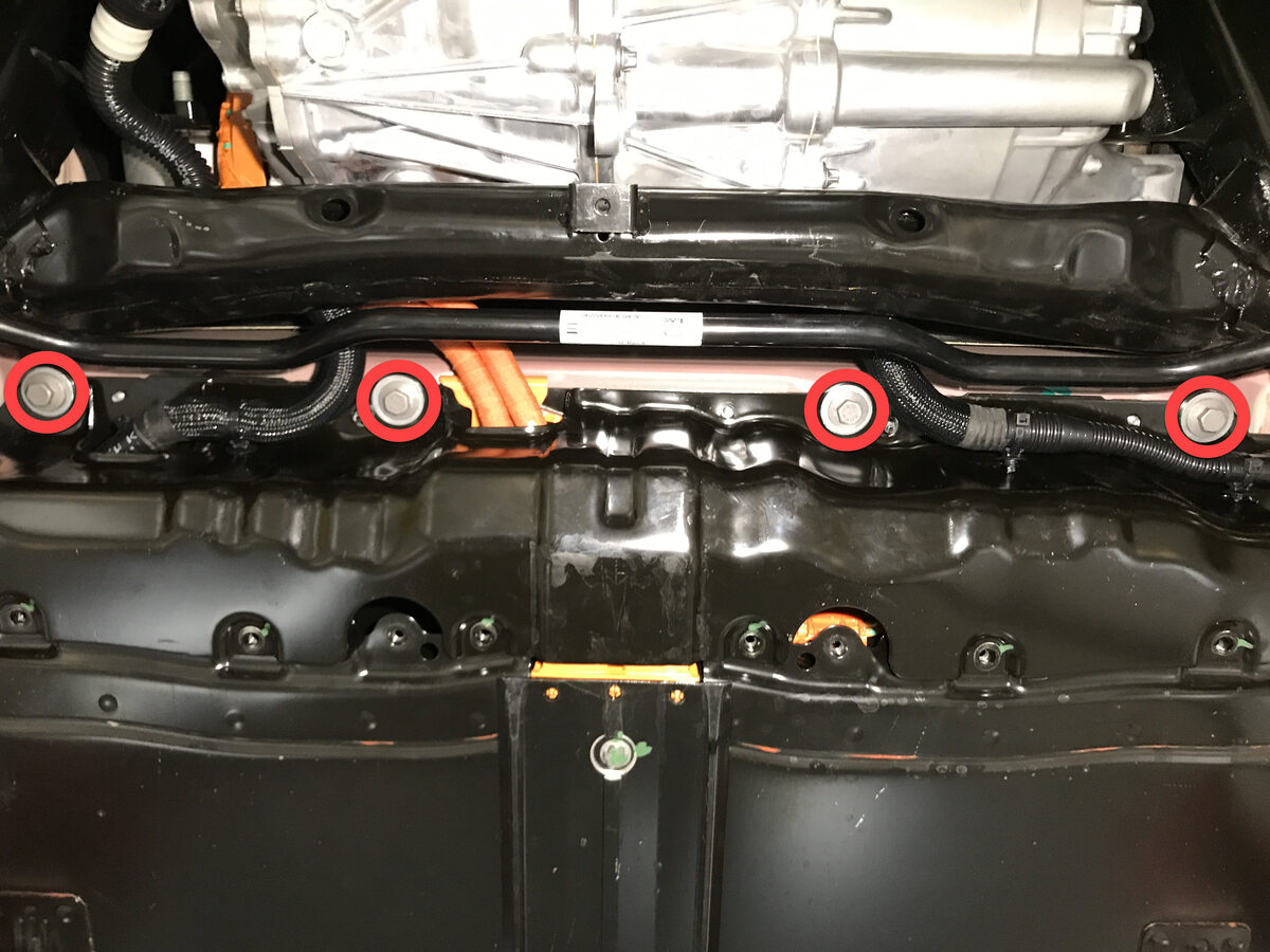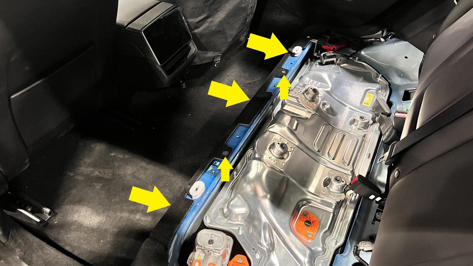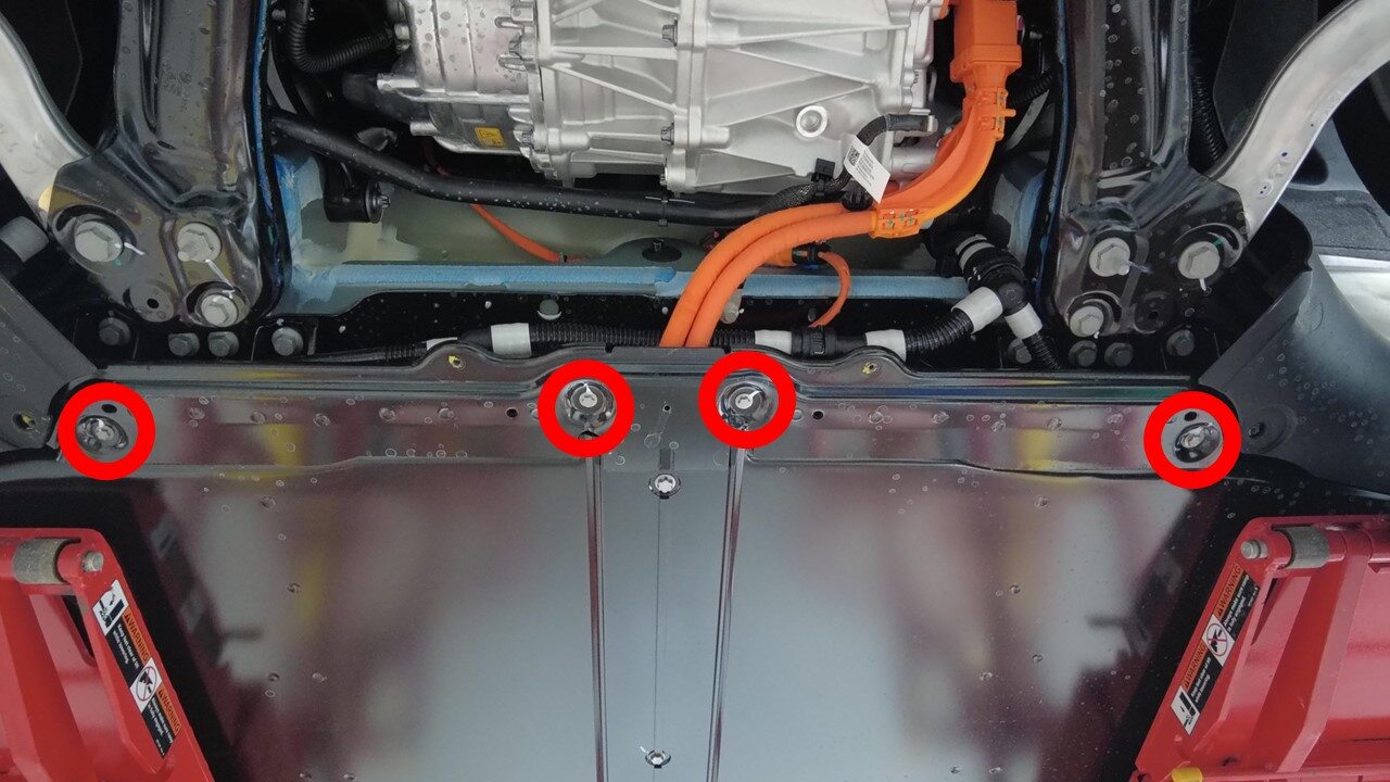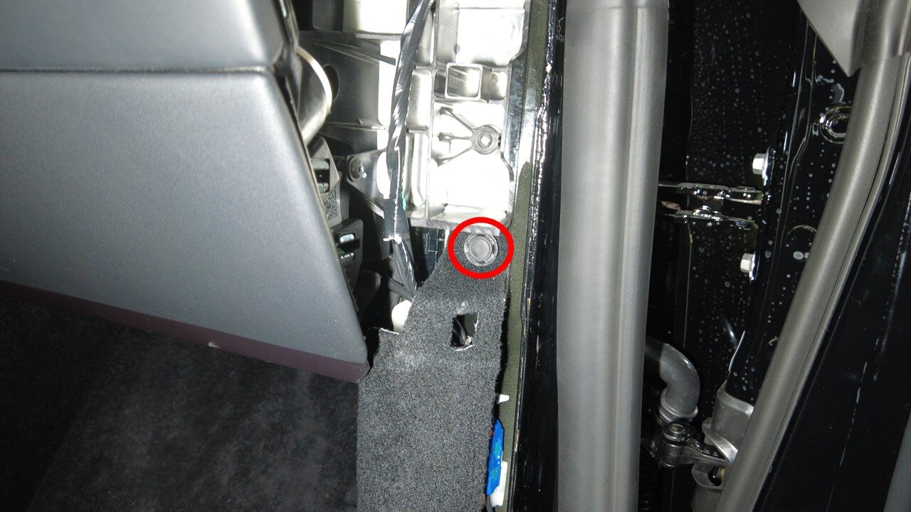 注1x bolt, 16mm, 66 Nm, Lift up carpet for access.