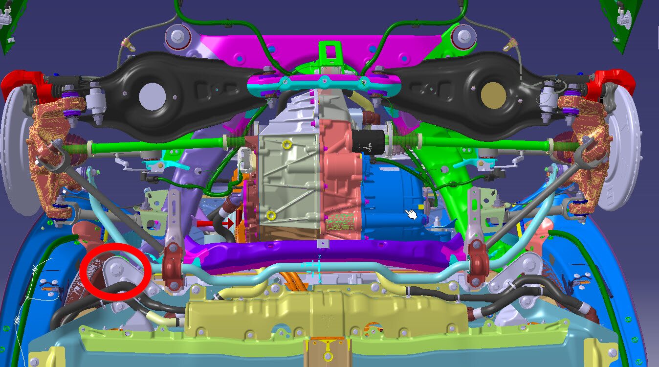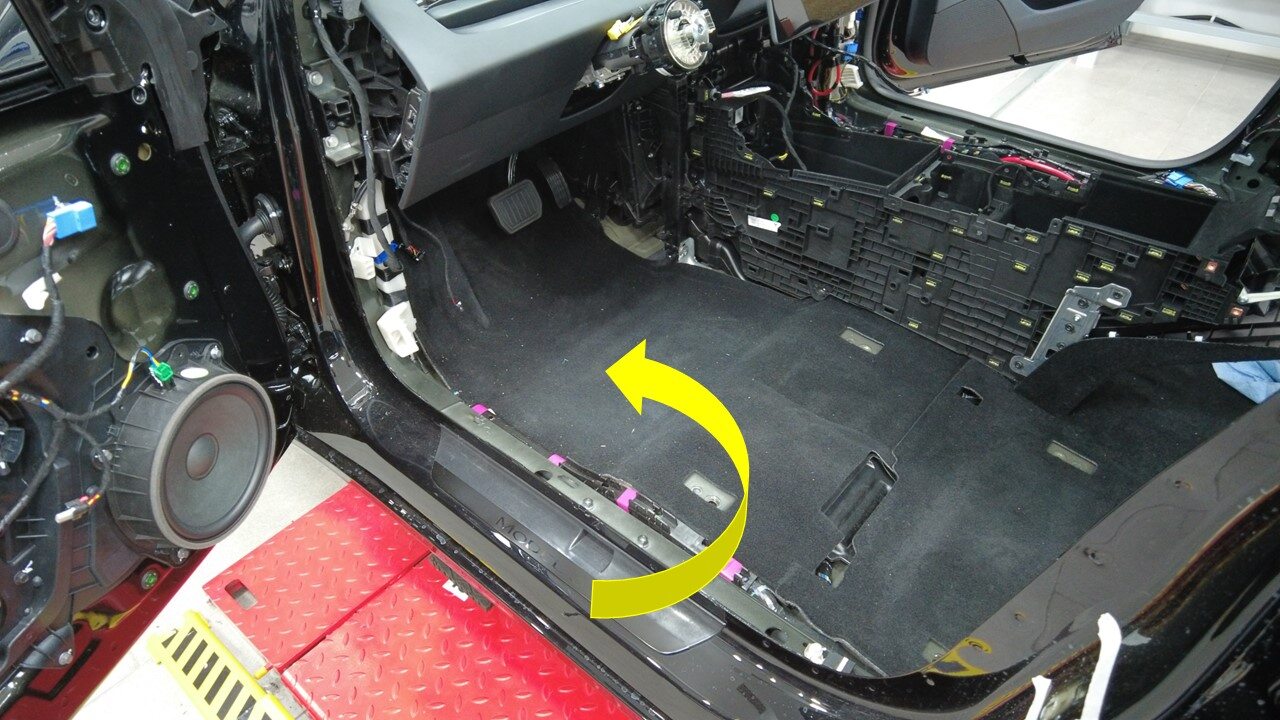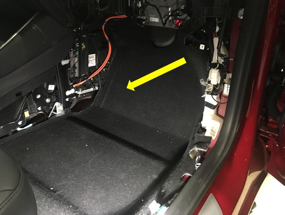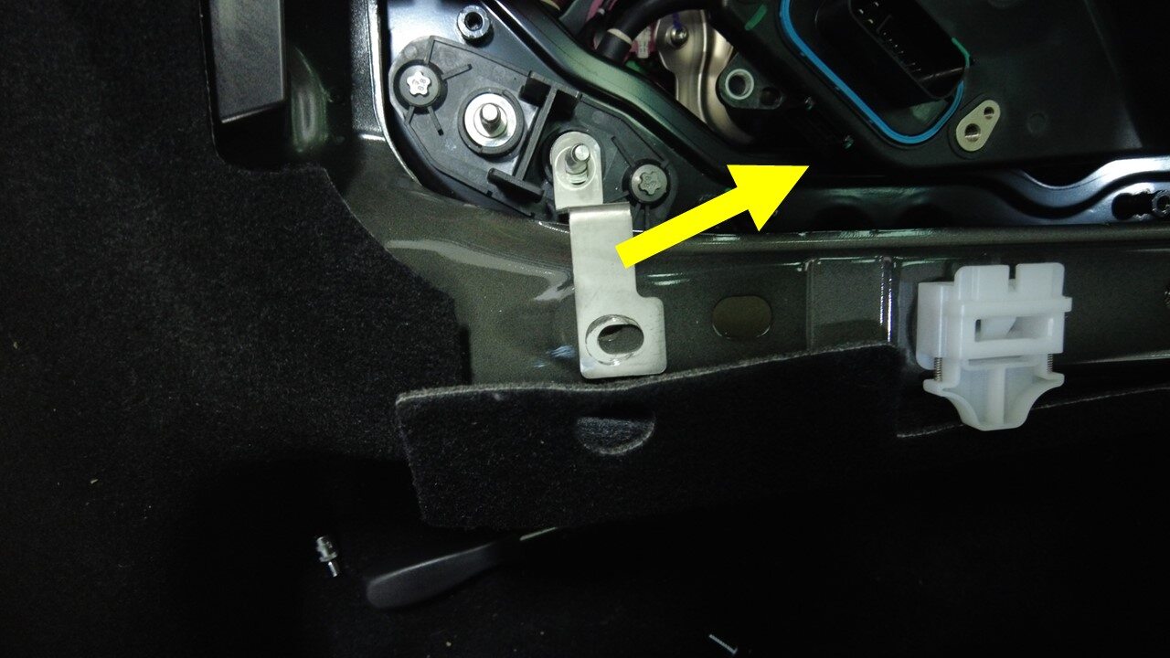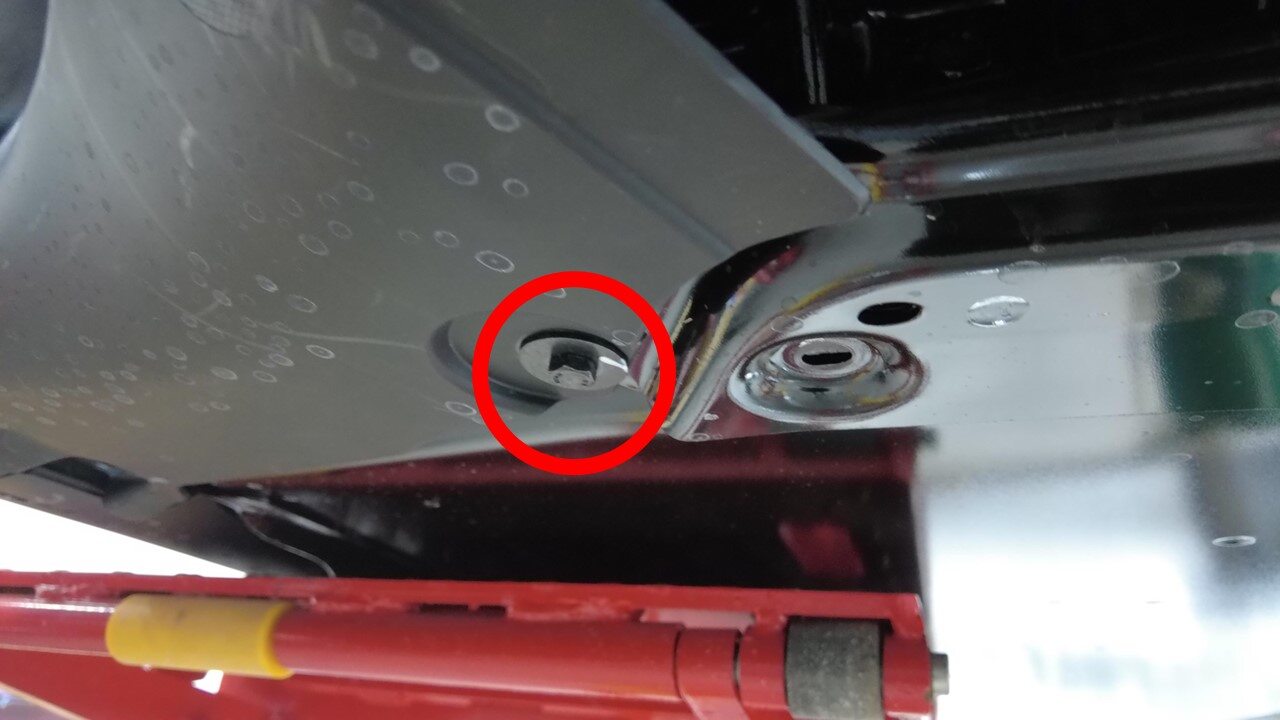 注1x bolt, 16mm, 66 Nm, Lift up carpet for access.