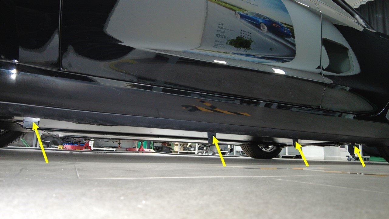 注Remove body plugs and install M3 lift pad adapters to indicated locations .