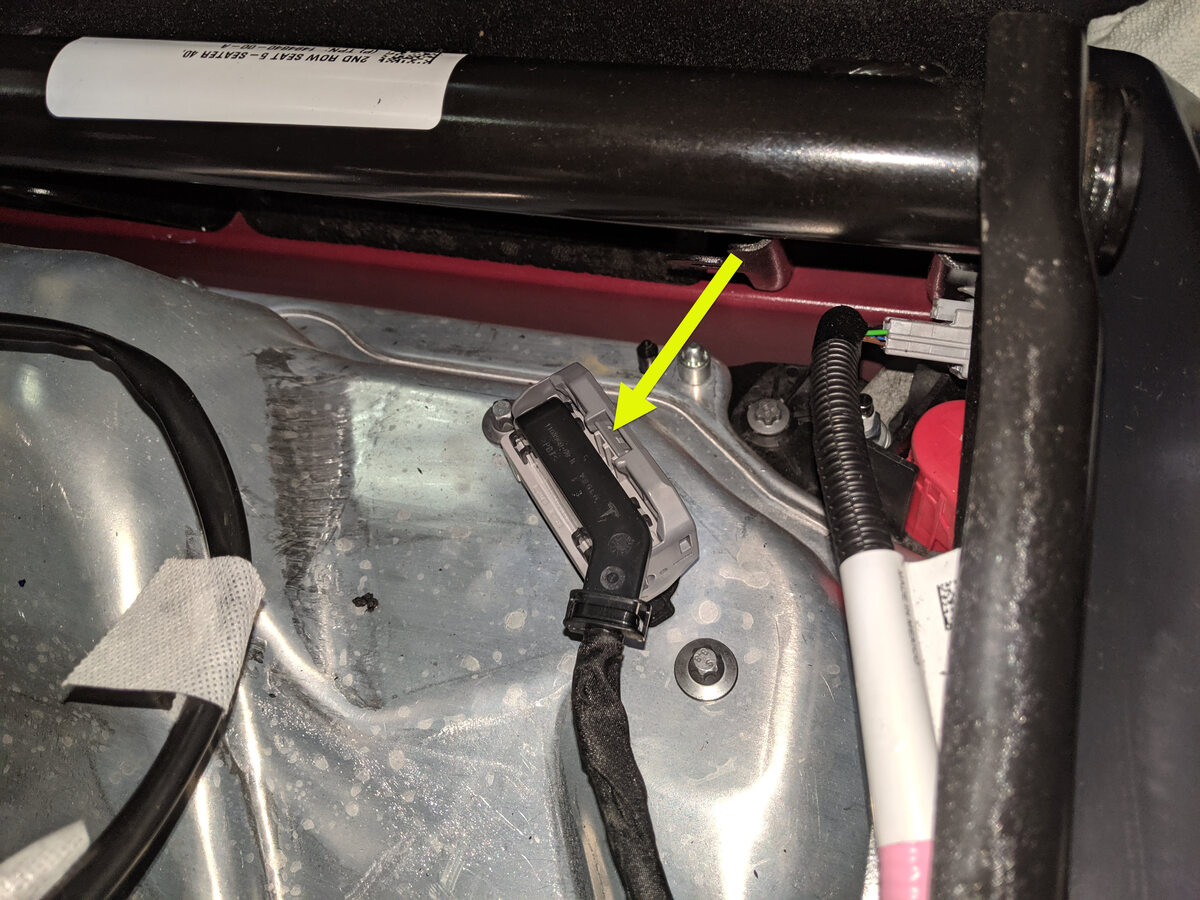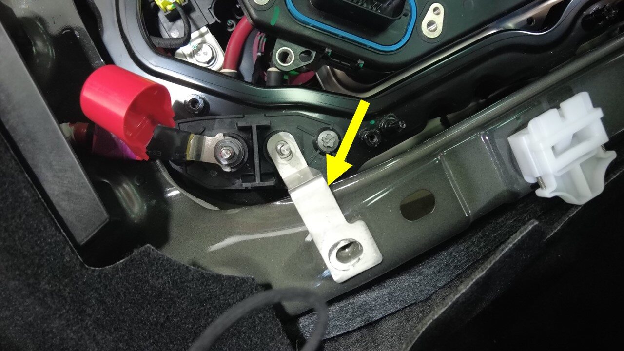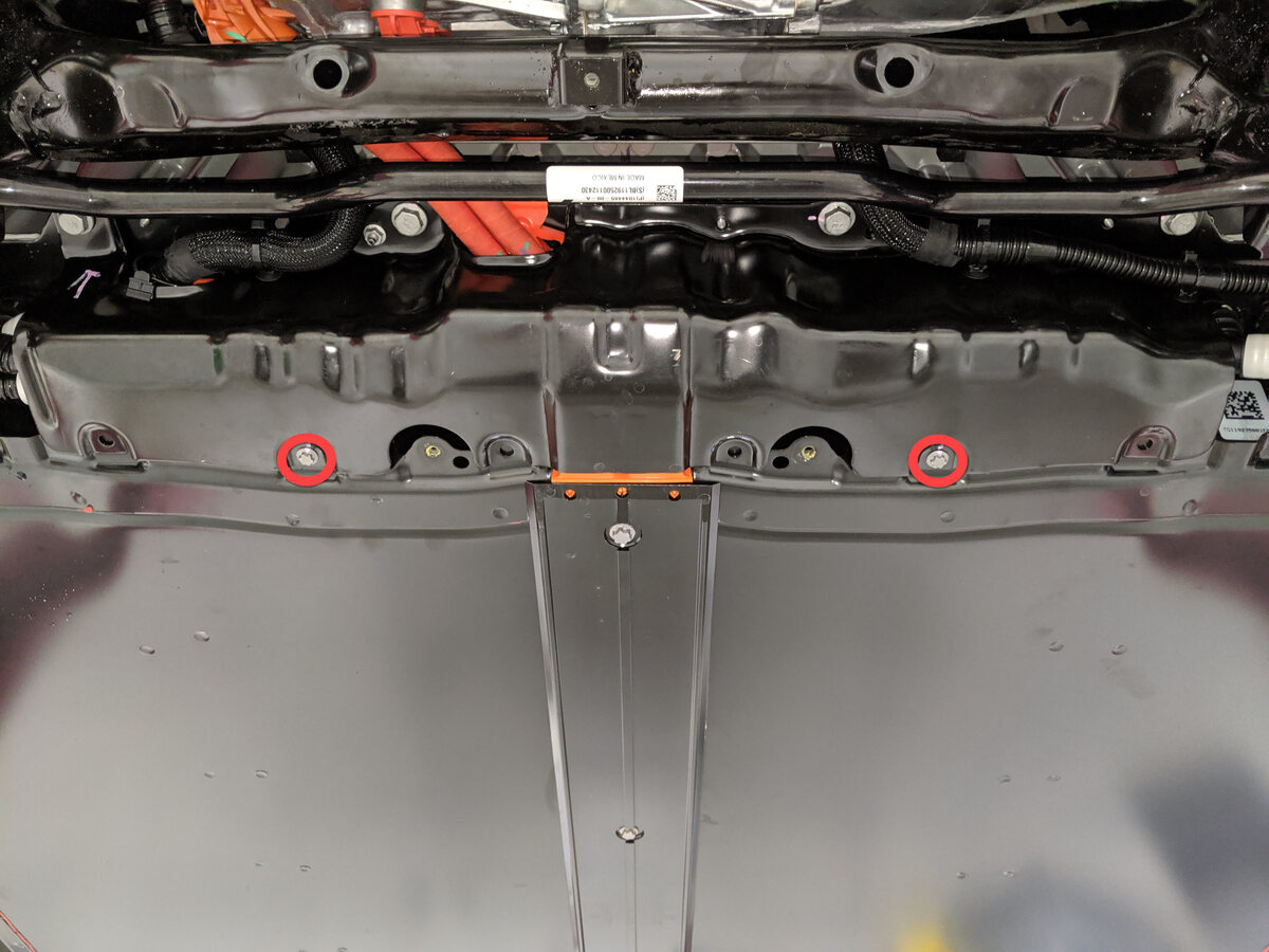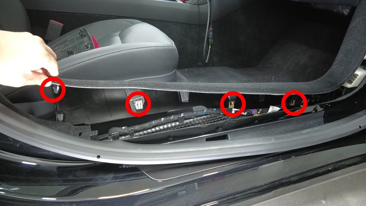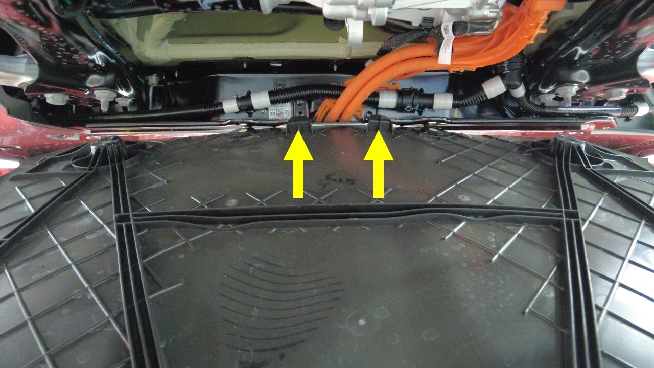 注3x clips, 1x connector, Frunk safety switch, 3x guide tabs, Align 3x tabs then push forward to secure clips.