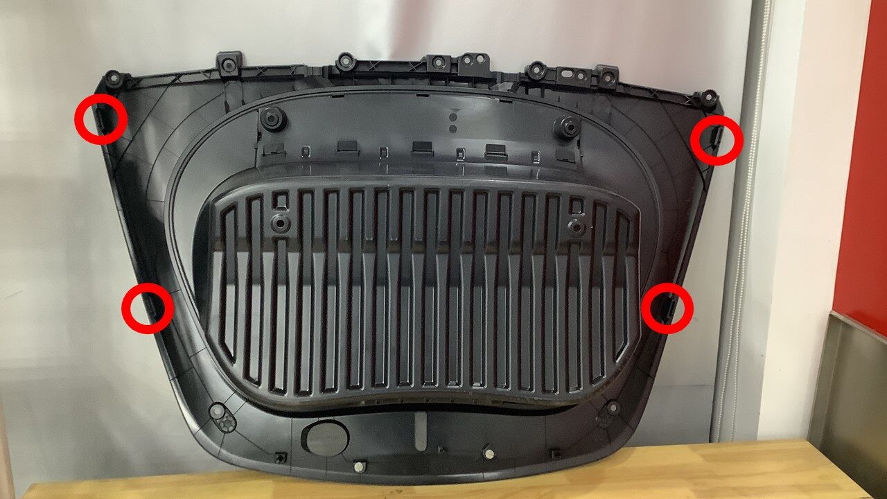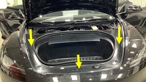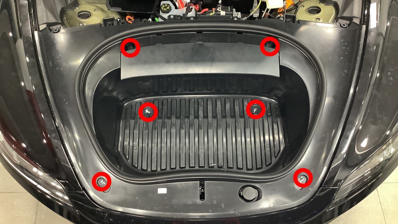 注14x clips, Hold rear wall of frunk to keep from flexing while engaging front clips.