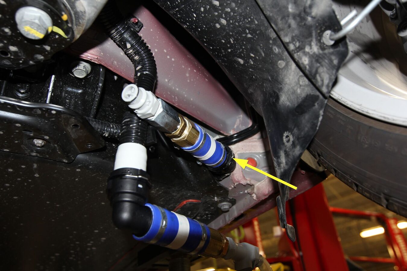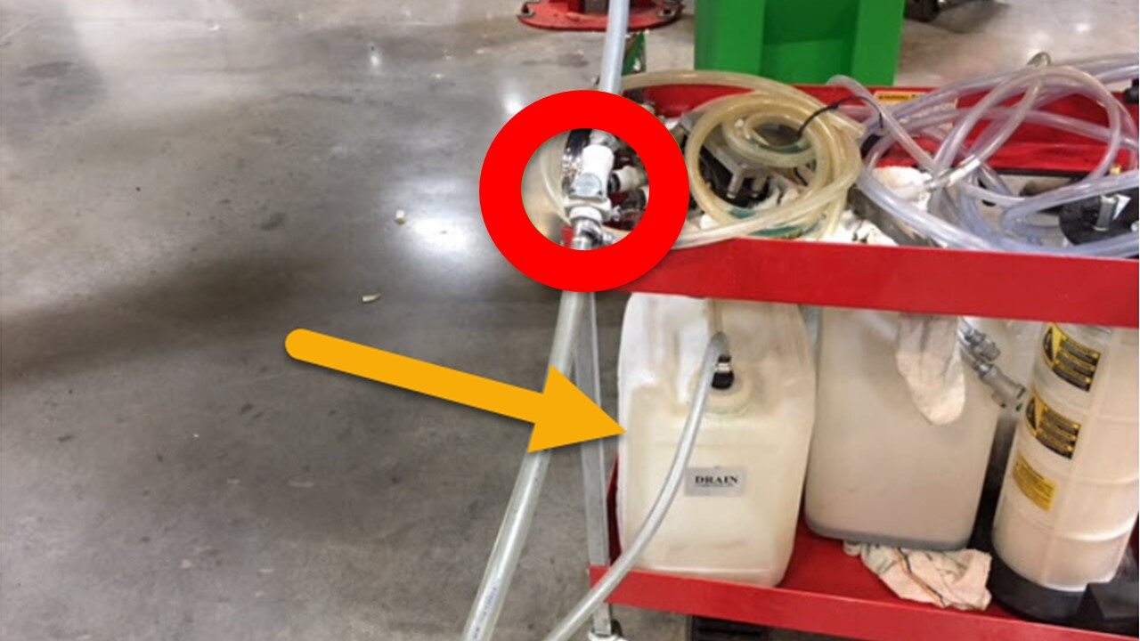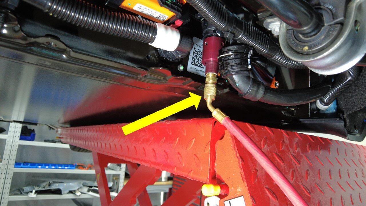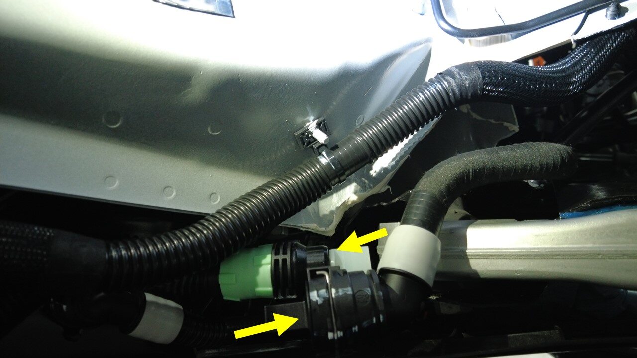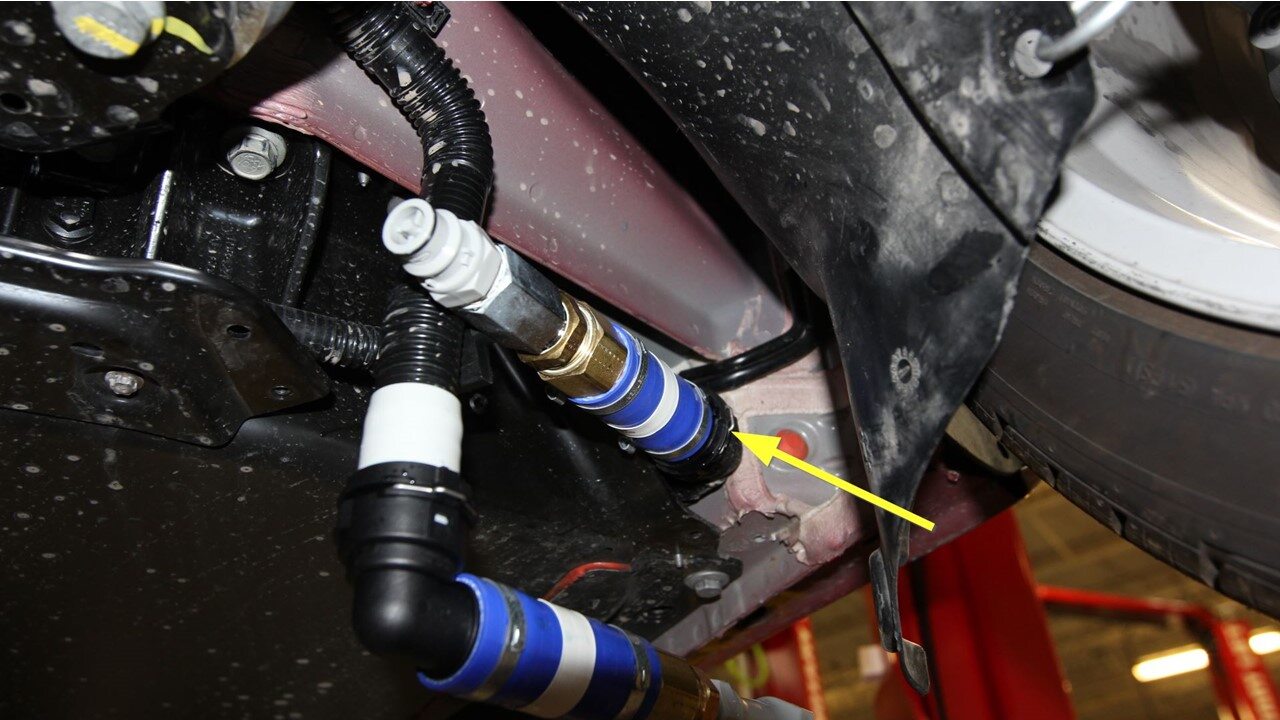 - Remove vacuum refill hose from refill cap on coolant bottle.