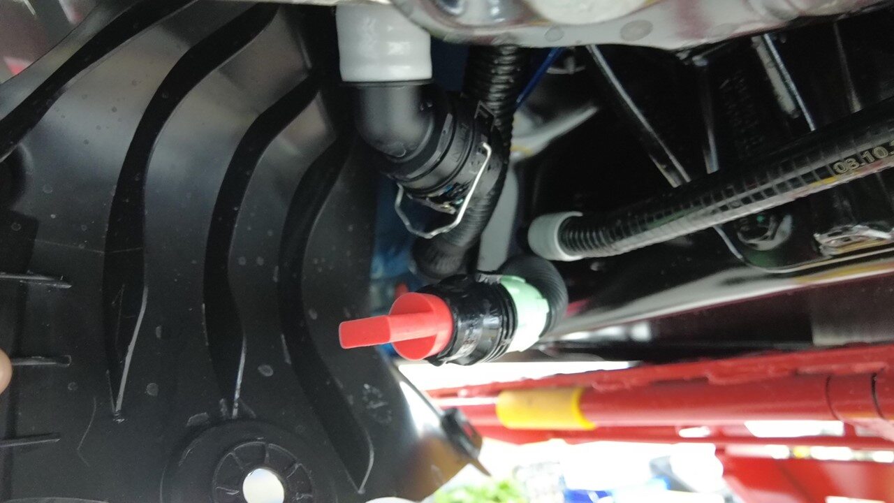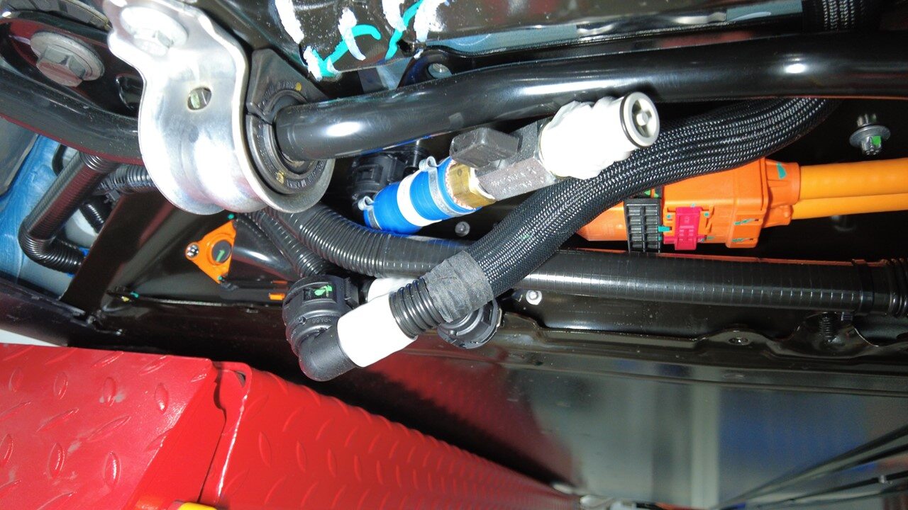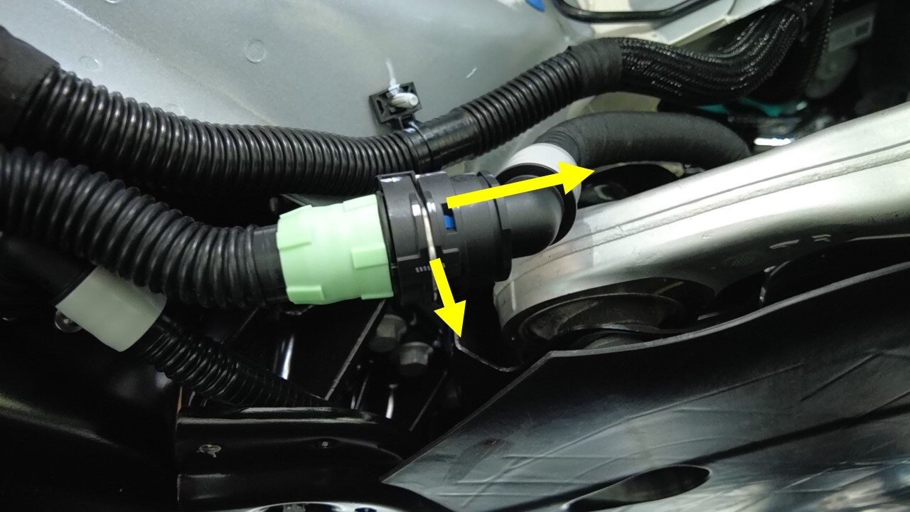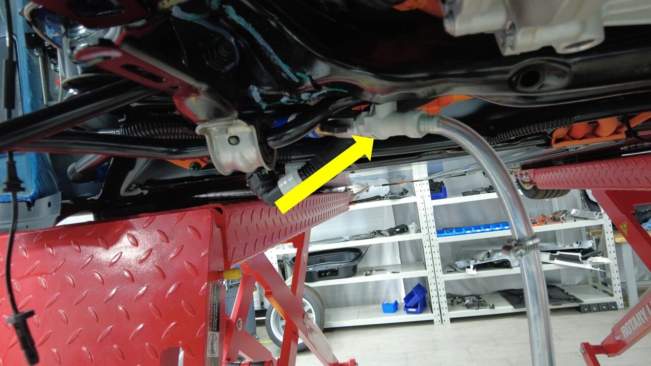 - Remove vacuum refill hose from refill cap on coolant bottle.