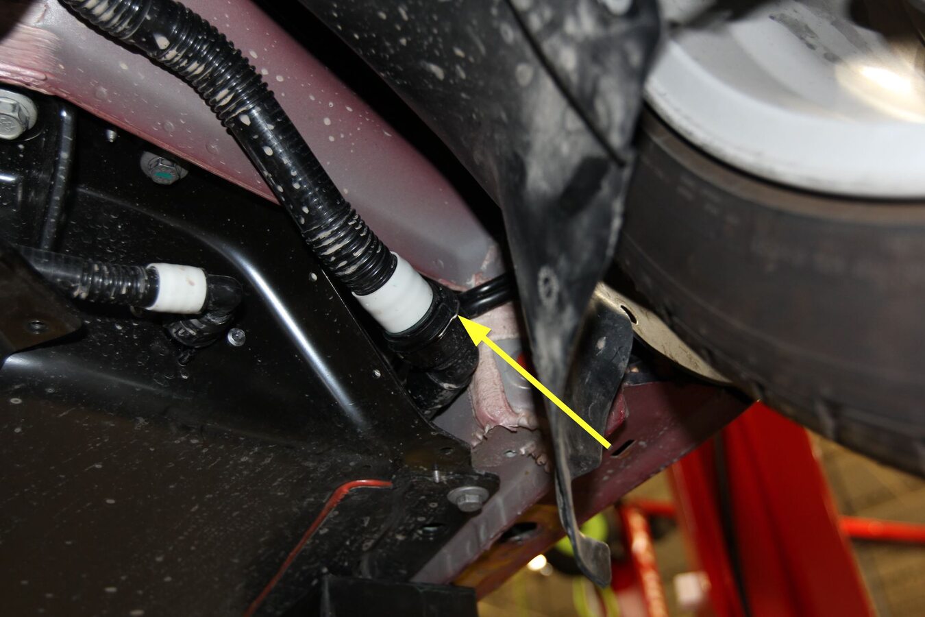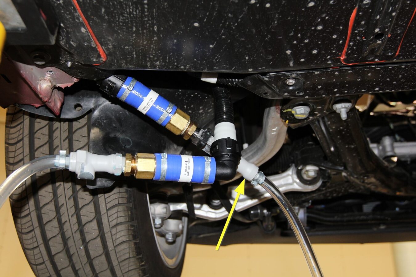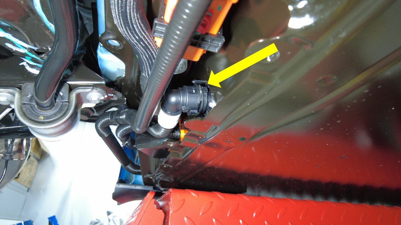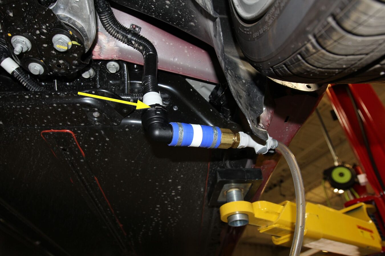- Remove vacuum refill hose from refill cap on coolant bottle.