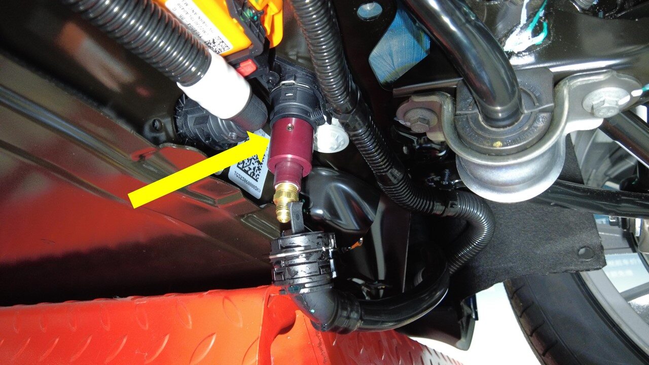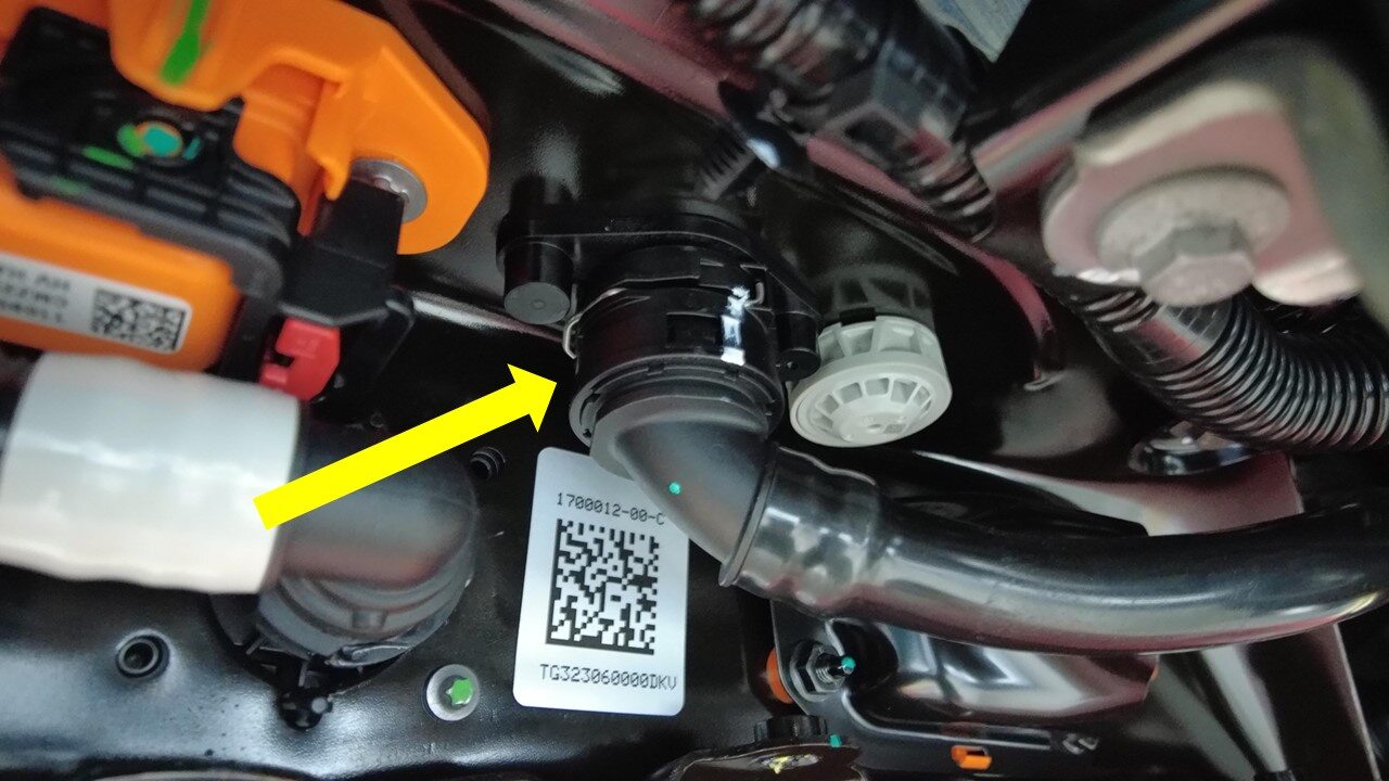 注等待冷却液泵停止运行(可听见噪音),界面上将出现“例行程序完成”,但冷却液泵将继续运行 10 分钟,如果在这段时间内开始执行下一例行程序,该例行程序将运行失败。确保车辆未处于“前进挡”,即使出现完成消息,例行程序仍在运行,怠速 = 约1500 RPM,测试中,速度将在 3500-6500 RPM 之间变化,启动的阀门将在串联和并联之间切换,将车辆置于“行驶”状态,此例行程序将停止。如果速度在 7000 RPM 左右徘徊,则说明冷却液泵存在气锁状况,请进行真空加注;继续添加冷却液并排空空气,直至冷却液液位介于冷却液罐上的 NOM 与 MAX 线之间