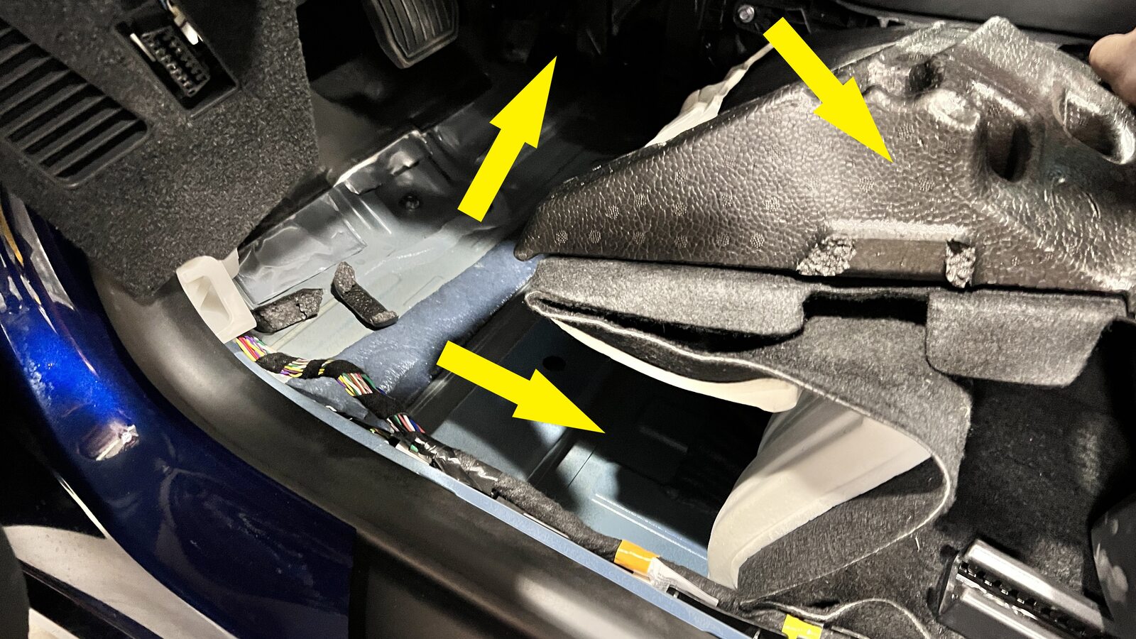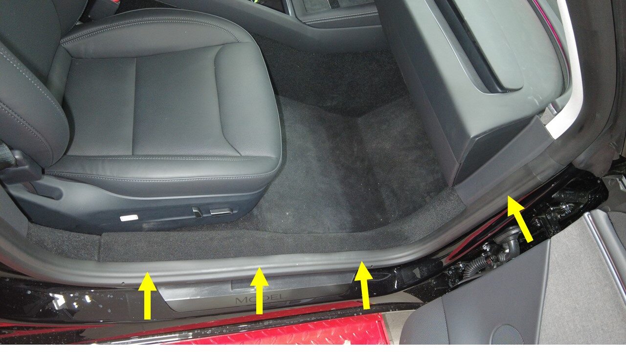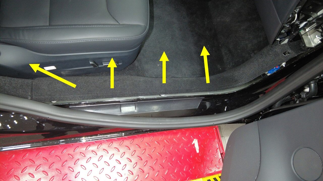 注4x clips, 2x guide tabs, Align the 2 front tabs then align the slot with harness bracket and then push rear clip to secure to lower B-pillar, Fully seat seal along trim.