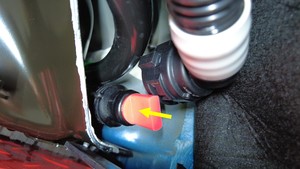- 取走放置在车辆右后侧下方的冷却液排放容器。