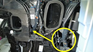 - 松开将仪表板线束固定到 HVAC 总成右侧的卡子。