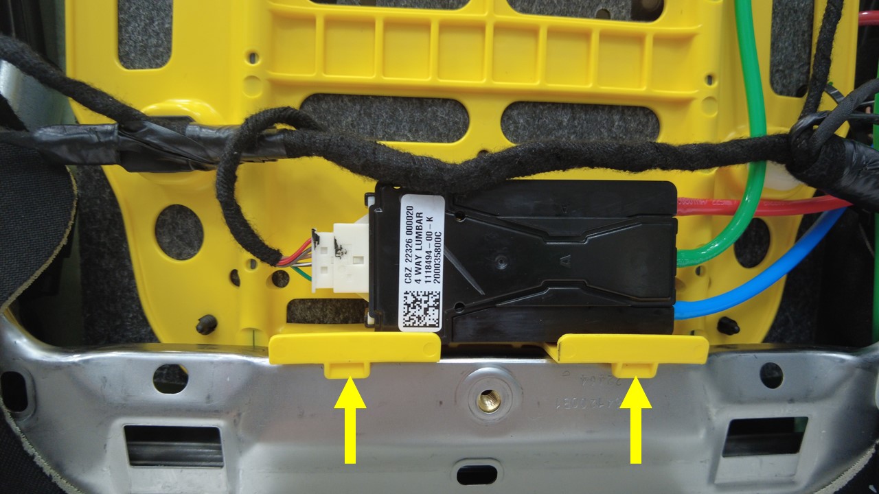 - 安装将腰部支撑底部固定到座椅靠背框架的锁片(2 个)。