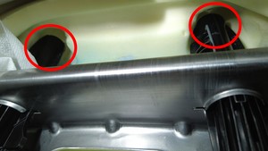 - 紧固遮盖座椅靠背框架上部的定位板,然后将驾驶位座椅靠背饰板固定件(7 个)安装到驾驶位座椅靠背框架。