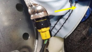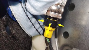 - 压住黑色锁片两侧并向下拉动,断开气囊电气连接器。