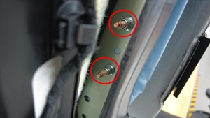 - 拆卸驾驶位座椅头枕饰板。请参阅第一排头枕总成 ((拆卸和更换))。