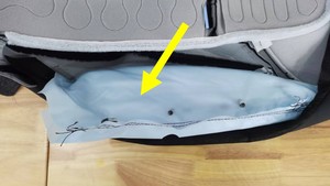 将侧气囊滑槽连同其内部气囊一起滑过座椅靠背泡沫,然后将气囊从气囊滑槽上小心拆下。