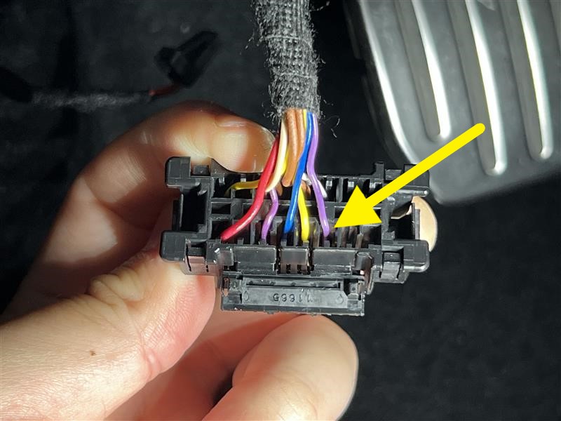 - 将针脚 3(紫色)接线端子从车载诊断系统 (OBD) 连接器上拆下。