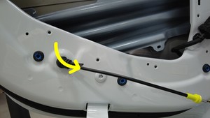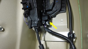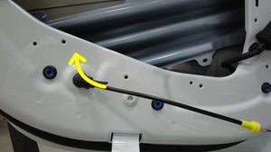 - 将左后车门闩锁穿过左后车门,然后安装闩锁线缆索环。