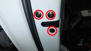 紧固将左后车门闩锁固定到左后车门后部的螺栓(3 个)。