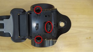 - 松开将第二排中间座椅安全带卷收器固定到第二排座椅框架的锁片(3 个),然后将卷收器从座椅框架上拆下。