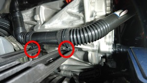 将新的高压电池回路软管放置到车辆上。