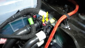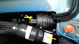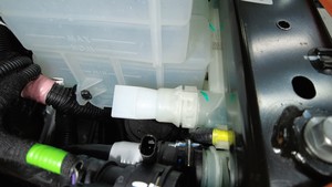 - 将传感器连接器从冷却器至电池软管上断开。