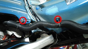 - 松开将高压电池回路软管固定到车辆的卡子(2 个)。